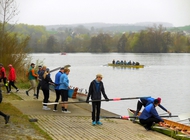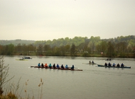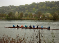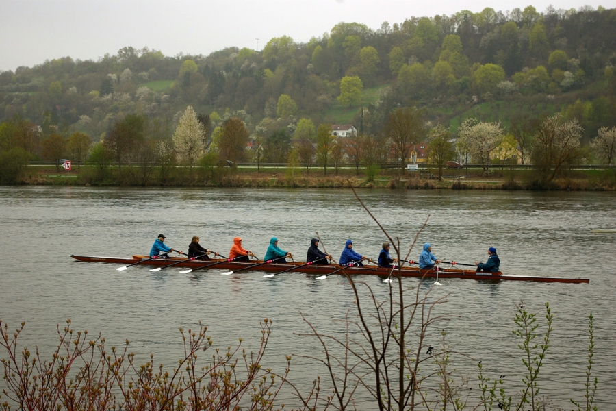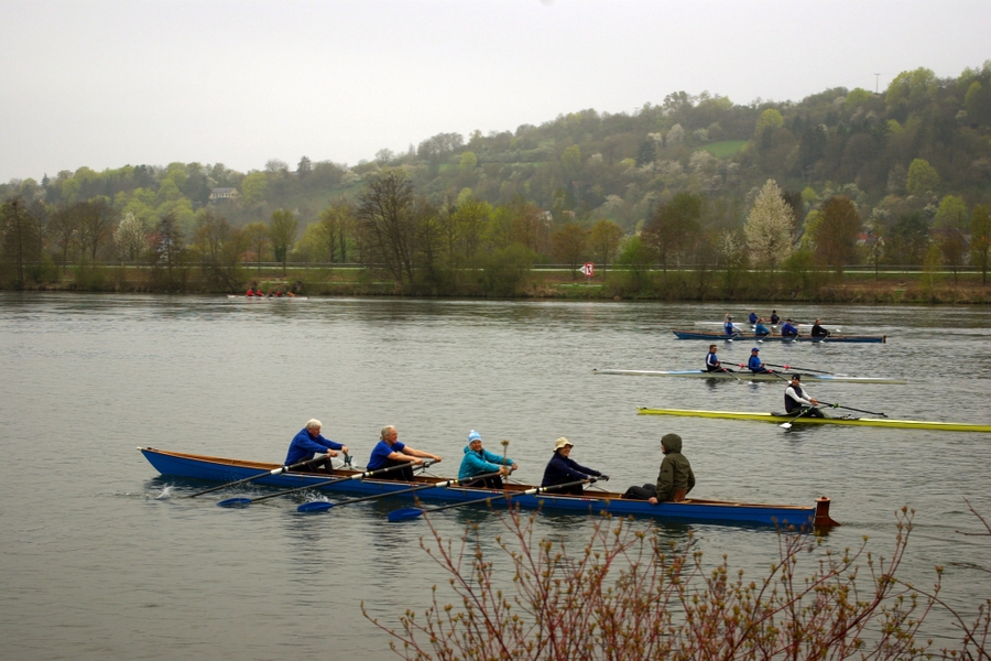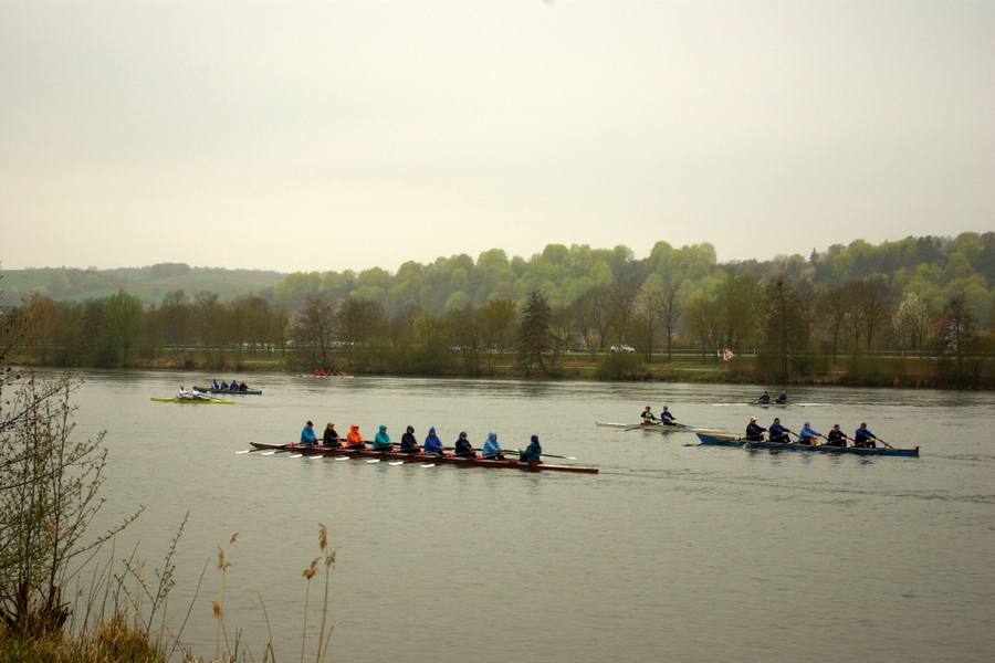 Trotz bescheidener Wetterbedingungen brachten die beiden Regensburger Rudervereine, der RRK und der RRV, beim Anrudern rund 25 Boote aufs Wasser, darunter fünf Achter, vier davon vom RRK, die sich unterhalb des Bootshauses aufreihten und auf ein Startkommando hin in einer lockeren Formation in Bewegung setzten, um die ersten zehn bis zwölf Kilometer des Jahres auf der Donau und der Naab zu absolvieren. Sicher waren darunter auch Ruderer und Ruderinnen, die das Rudern als Ganzjahressport betreiben und auch schon vor Beginn der offiziellen Rudersaison von Mitte April bis Mitte Oktober auf Wasser waren, lag doch sogar das Inn River Race in Passau, einen Tag vor dem Anrudertermin.