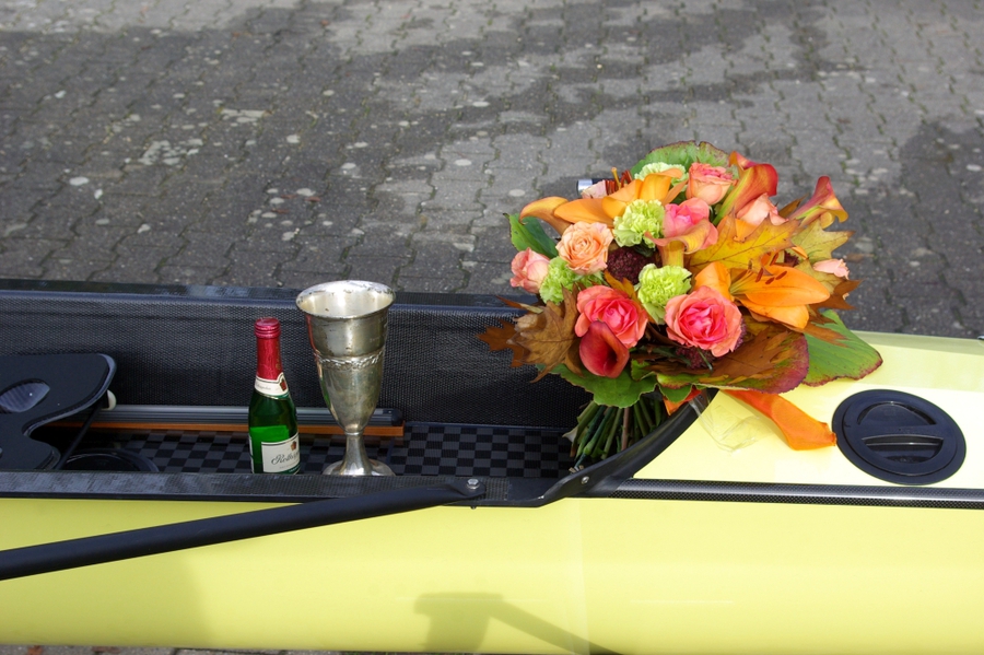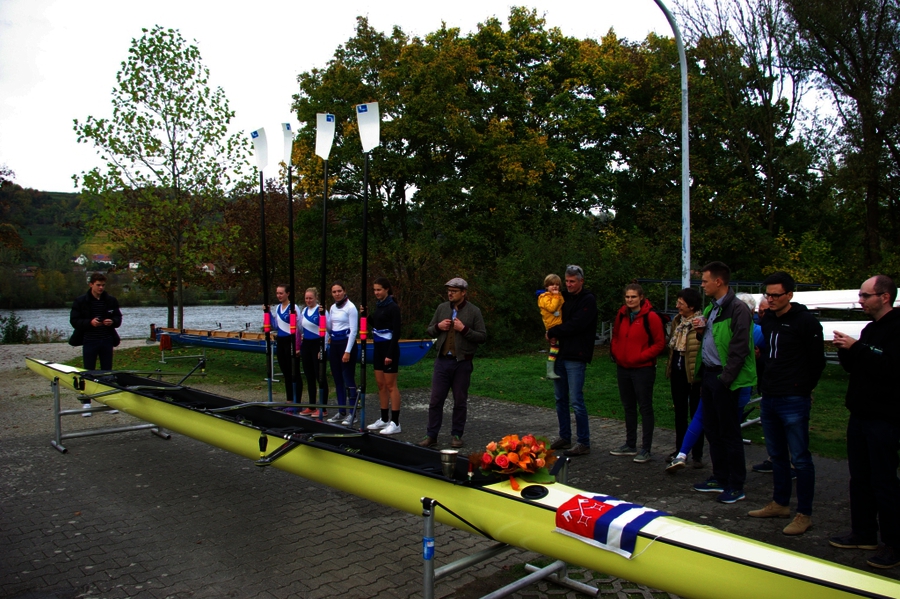 Im Anschluß an die Rennen konnte noch ein schicker Empacher Vierer getauft werden, der nach einem Unfallschaden mit Totalverlust eines Schellenbacher-Bootes von der Versicherungssumme erworben werden konnte. Wegen Verhinderung des ursprünglich vorgesehenen Taufpaten Benedikt Lintl, nahm der Ressortleiter Leistungssport Dr. Georg Graml die Taufe vor, der sich darauf wohl nicht sehr gründlich hatte vorbereiten können, denn er wünschte dem Boot „immer eine Handbreit Kiel unter dem Wasser“. Aber solange das Boot nicht tiefer eintaucht, ist wohl auch das okay.