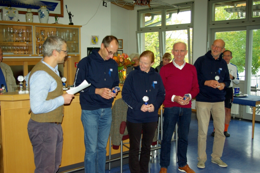 Im Aufenthaltsraum des Bootshauses fand dann die mit Spannung erwartete Siegerehrung statt, lagen doch manche der Boote tatsächlich nur Sekunden auseinander.