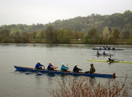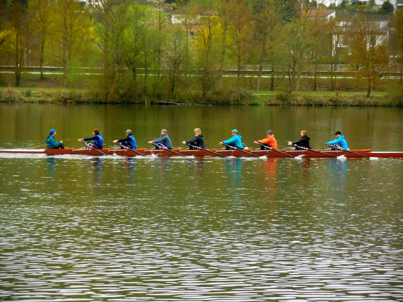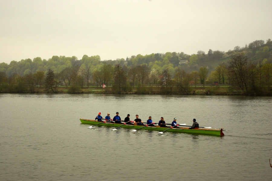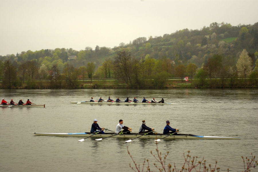 Trotz bescheidener Wetterbedingungen brachten die beiden Regensburger Rudervereine, der RRK und der RRV, beim Anrudern rund 25 Boote aufs Wasser, darunter fünf Achter, vier davon vom RRK, die sich unterhalb des Bootshauses aufreihten und auf ein Startkommando hin in einer lockeren Formation in Bewegung setzten, um die ersten zehn bis zwölf Kilometer des Jahres auf der Donau und der Naab zu absolvieren. Sicher waren darunter auch Ruderer und Ruderinnen, die das Rudern als Ganzjahressport betreiben und auch schon vor Beginn der offiziellen Rudersaison von Mitte April bis Mitte Oktober auf Wasser waren, lag doch sogar das Inn River Race in Passau, einen Tag vor dem Anrudertermin.