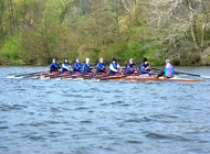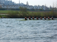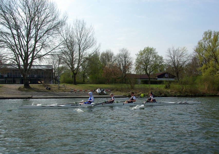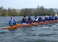 Das highlight der Trainingswoche, die unsere schottischen Freunde als Gäste des RRK in Regensburg verbrachten, war das traditionelle Anrudern der beiden Regensburger Rudervereine (RRK und RRV), das am Sonntag bei kühlem Wetter und nicht gerade idealen Ruderbedingungen stattfand, weil der Nordostwind starken Wellengang verursachte, der vor allem den Crews in Rennbooten zu schaffen machte.