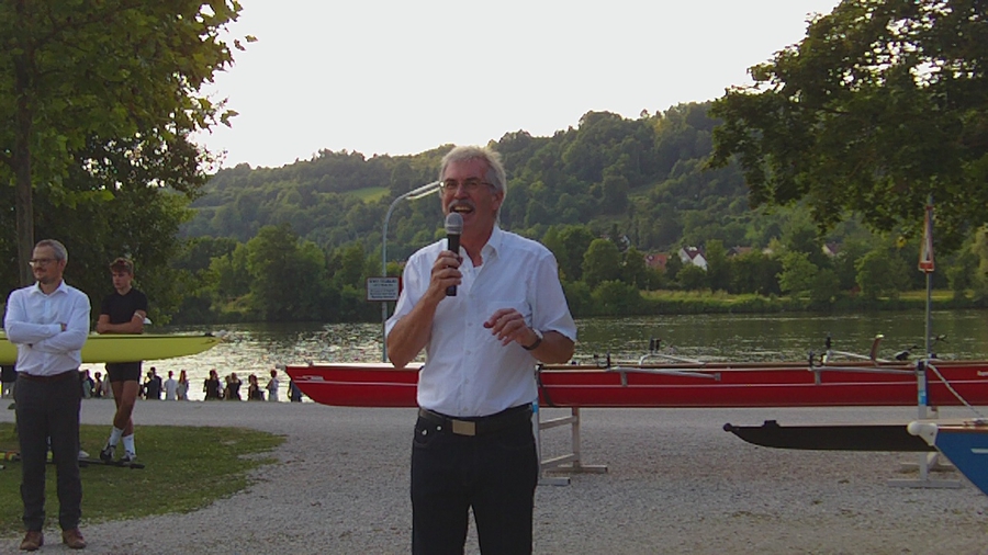 Entsprechend freudig begrüßte der Vorsitzende Hans Thumann die Mitglieder und Gäste, die sich in dem ansprechend gestalteten Ambiente sichtlich wohl fühlten. Den Programmauftakt bildete die Bootstaufe. Neben zwei Privatbooten von Klubmitgliedern konnten drei neue Klubboote getauft werden: ein Schellenbacher-Boot, das entweder als Dreier mit Stm oder als Vierer ohne gefahren werden kann, ein Zweier der Werft Rehberg und ein Empacher Riemen-Rennzweier, Baujahr 2016 – ein Rückläufer von einem internationalen Wettbewerb.