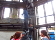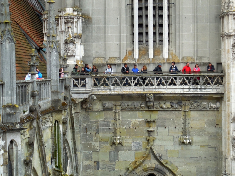 Am vierten Tag ihres Aufenthalts in Regensburg hatten unsere spanischen Gäste aus Tui, Galizien, die Gelegenheit, die Dombauhütte und die Arbeit eines Steinmetzes kennenzulernen und dann den Dom selbst zu besteigen - für alle ein einmaliges Erlebnis. Dafür muß die für morgen geplante Rudertour durch den Donaudurchbruch bei Weltenburg wegen Hochwasser entfallen. Es herrscht eine Rudersperre. Eine etwaige Alternative stellt das Westbad dar.