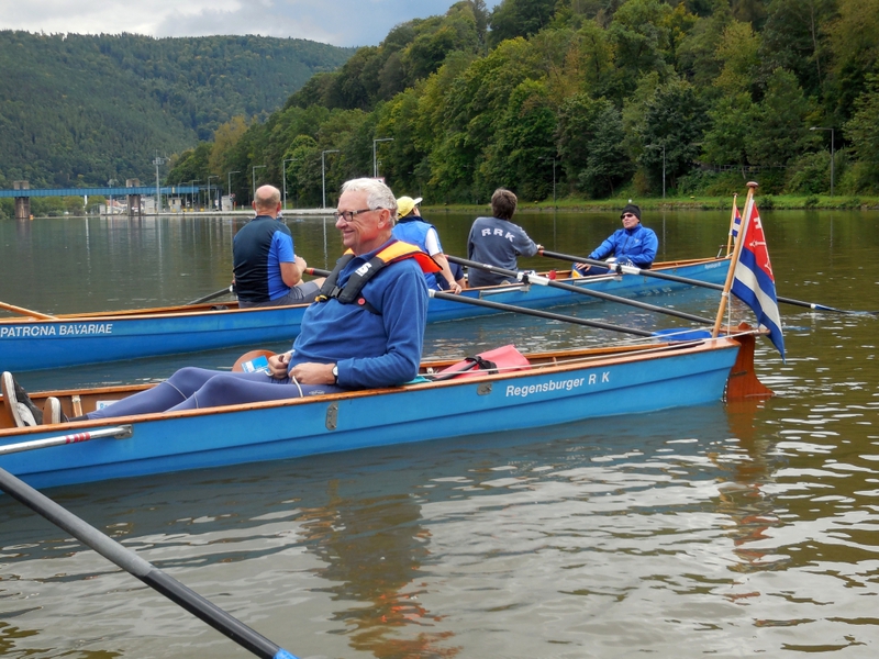 Anläßlich seines 40jährigen Jubiläums als Wanderruderwart luden Hans und Karin Thumann zu einer herbstlichen Main-Wanderfahrt von Wertheim über Bürgstadt nach Großwallstadt ein, wo Karin zu Hause war. 33 Personen, davon 23 Ruderinnen und Ruderer, nahmen an der Wanderfahrt teil, die trotz der wenig einladenden Großwetterlage ohne Regen, zeitweilig sogar unter blauem Himmel stattfand. Auch die Staus auf den Autobahnen konnten - zumindest vom Bootswagengespann - geschickt umfahren werden. Manche hatten freilich weniger Glück. Die fünf Staustufen auf der 57 km-Strecke konnten meist über die Großschifffahrtsschleusen überwunden werden. Nur einige machten Bekanntschaft mit den engen Bootsschleusen mit Fischtreppen, die den Mannschaften einiges Geschick abverlangen. Highlights waren das Panorama von Wertheim, die Ruine Henneburg, Bürgstadt, das wir im Rahmen einer ausführlichen Stadtführung kennenlernen durften, und natürlich das Panorama von Miltenberg mit seinen Buntsandsteinbauten. Etwas anti-klimaktisch war dann der Zielpunkt Großwallstadt, doch das machte der Ausklang in der Häckerwirtschaft Gunther wett.