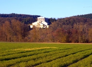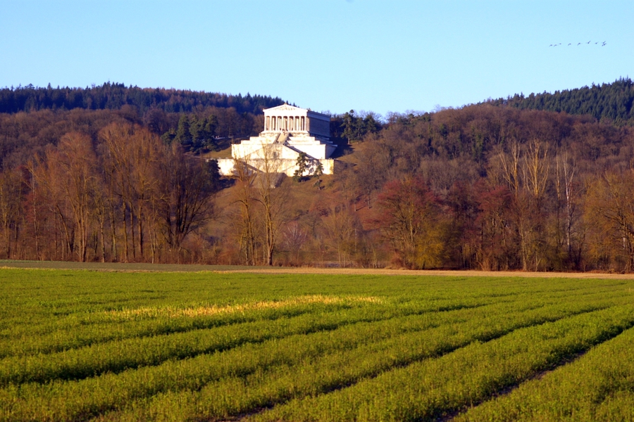 Das Wetter zeigte sich von seiner besten Seite, so daß der nahegelegene Walhalla-Tempel und die Burgruine Donaustauf auf dem Nordufer der Donau in strahlendem Licht erschienen.