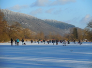 Wintersport auf einem Donau-Altarm zu Füßen der Walhalla