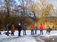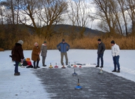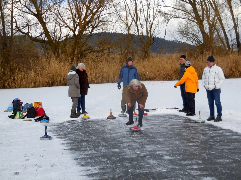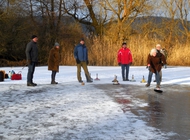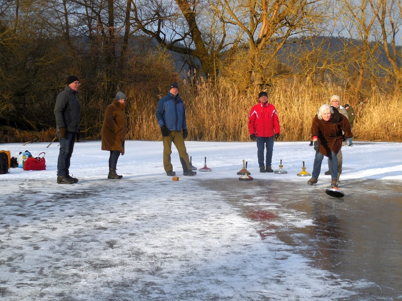 Der Regensburger Ruder-Klub ist nicht nur mit einem idealen Ruderrevier gesegnet. Auch für eine seiner Wintersportarten, das Eisstockschießen, hat er eine attraktive location: die sogenannte „Rinsen“ bei Sarching im Dunstkreis der Walhalla und der Burgruine Donaustauf.